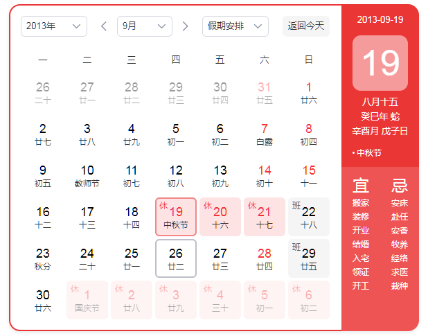 9月19日至21日放假調休,共3天。9月22日(星期日)上班。