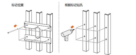 (10) 安裝壁掛架,在金屬支架上安裝需要在支架上對應壁掛架螺絲孔位置打孔,然后固定壁掛架。在墻面上安裝需在對應壁掛架螺絲孔位置打膨脹螺栓。